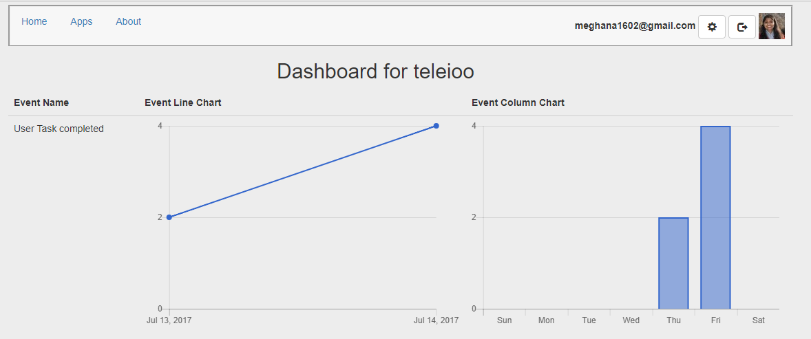 };Event Graph: JavaScript library chartkick gem is used to display the events graphically.