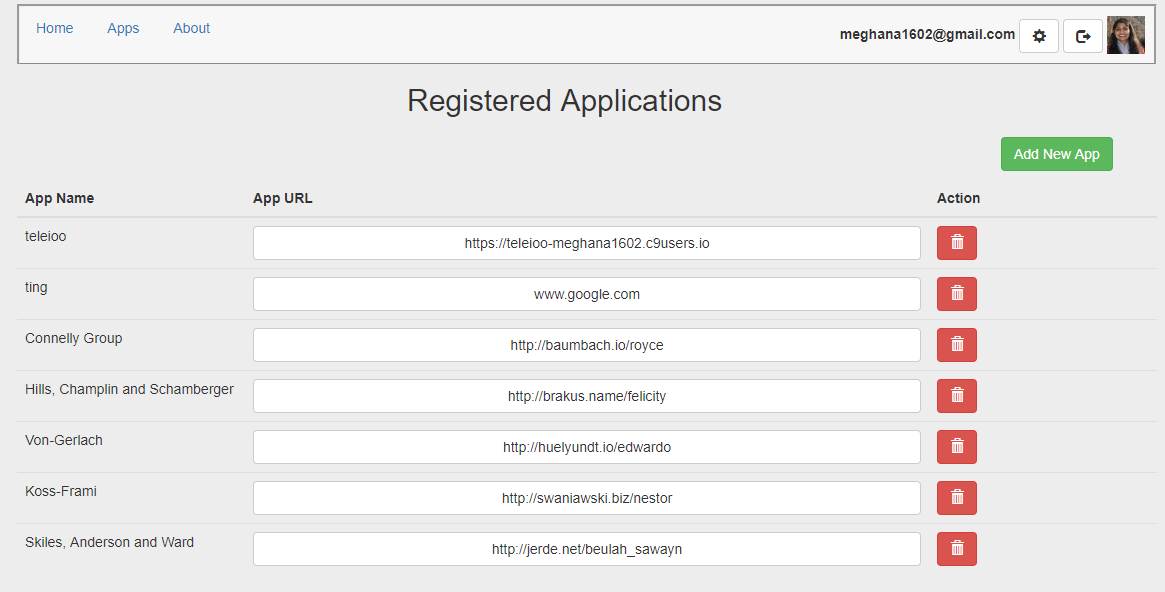 - Once logged in, the User’s show page should list all the registered applications of the User.