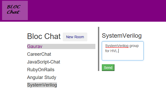It was a good learning experience in building realtime messaging app using AngularJS framework and Firebase database. Incorporating UI Bootstrap modal for room creation helped the app look more neat. There is a lot of scope for improvement like adding Admin user and giving specific admin rights.